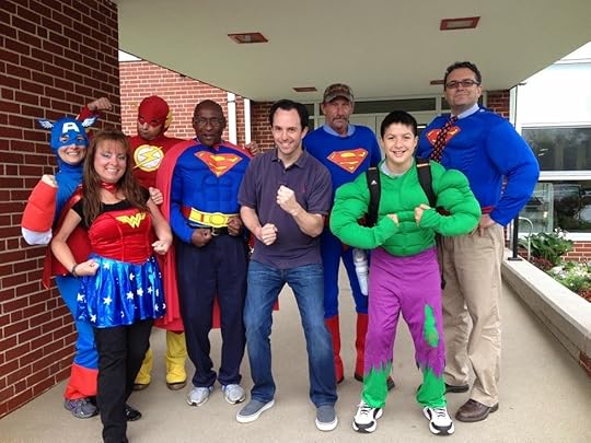 At my last author visit of the 2013-14 school year, I was greeted by the Justice League of Avengers.