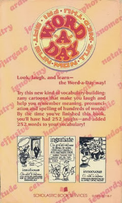 The title of the book, I believe, was Word-a-Day, by Mickey Bach. It came out in 1964, and it does appear that it was indeed published by Scholastic (or at least one edition was).