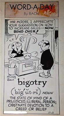 Apparently, Mickey Bach (1909-1994) churned out these illustrated vocab builders (they were not called vocabulary cartoons) from the 1940s to the mid-1980s.