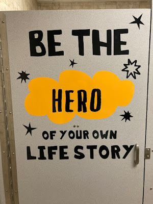 One is bedecking a stall door in a bathroom, and it echoes a message I share at the end of my presentations.