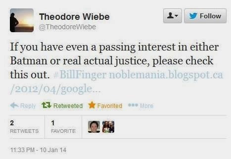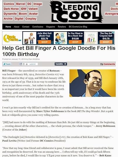 The campaign to get Bill Finger the Google doodle for his 100th birthday (2/8/14) continues to expand/blow me away.