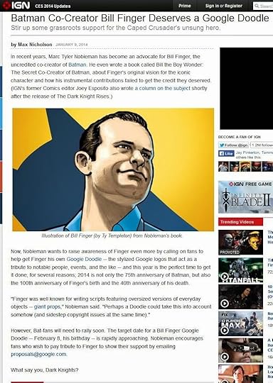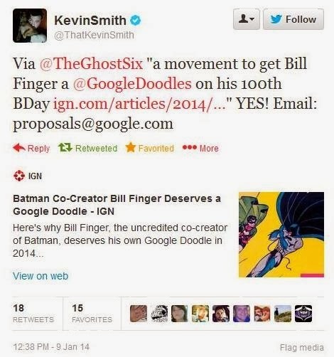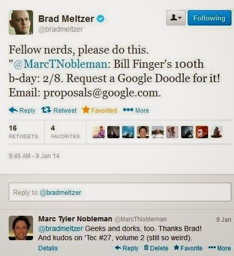Some big Batman fans who also happen to be big names are spreading the word about my effort to get Bill Finger a Google doodle for what would have been his 100th birthday, February 8, 2014.