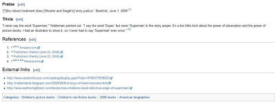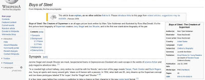 I would ordinarily not expect either book—most any nonfiction picture book, frankly—to get an entry, but because Bill the Boy Wonder reveals even more significant, never-published information than Boys of Steel, it would make that sense that if only one of the two were to be on Wikipedia, it would be Bill.