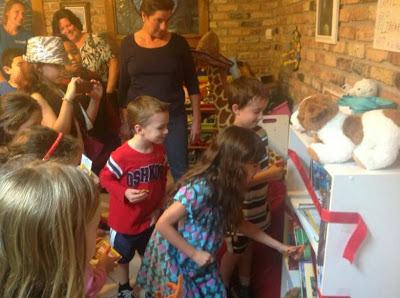 They decided on the name and made the sign. They have picked out a lot of the titles. We have visited several bookstores (new and used) looking for a variety of titles and they included their own collections as well.