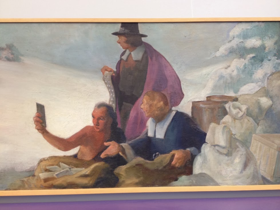 Pilgrim selfie (in a painting in a Westport, CT school).
