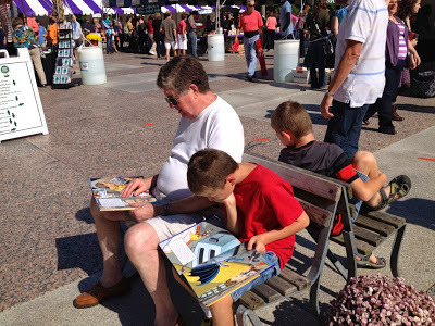 And now as then, I did a panel with talents I had not yet met but had an instant rapport with. This time with Nathan Hale (who had been recommended to me as a possible illustrator for Bill the Boy Wonder: The Secret Co-Creator of Batman) and James L. Barry. I was an author on an illustrator's panel so I had some justifying to do.