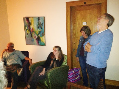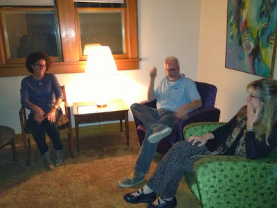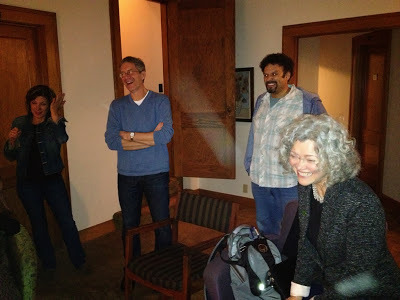 We had a sorority house (Marla, Judy, Barbara, and Anna) and a fraternity house (plus Candace, since she goes with Eric). With Neal and Kevin, I shared not only a program but also a bathroom. (To be clear, we took turns.)