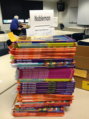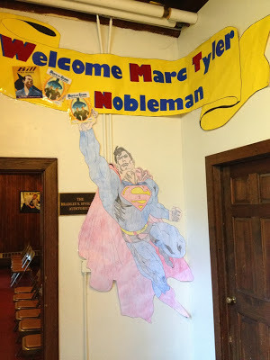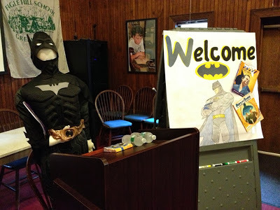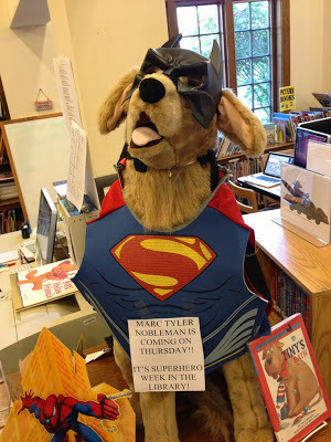 Though I have written a book on eagles, the topic du jour was another creature of flight: superheroes. My kind host Ann Chase and her students prepared not one, not two, but three dynamic displays for me. It sure is nice being a sidekick to Superman and Batman.