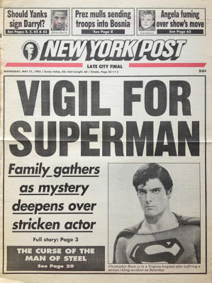 He died nine years after this accident, nine years ago today. To me, he will always be Superman, fictional and real.