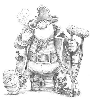 After doodling away as a character designer on Aardman's upcoming 'Pirates!' movie, I was delighted to be asked to join in with a sketch of one of my favourite characters from the film, the Pirate with Gout. Here it is: