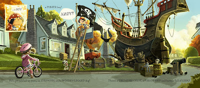 I was back at Templar in 2010 to talk about a second book, and took along some (very rough) roughs for a 'King of Space' picture book. But 'The Pirate Cruncher' had sold quite well, and Templar were keen for me to write another pirate book, so I wrote a story called 'The Jolley-Rogers', that later became 'The Pirates Next Door'.