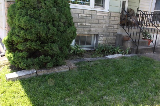 Now, then, came the work to restore some semblance of order and charm to the wreck of the yard. Repurposing those stones was the first set of decisions. Some, we knew, were destined for the front of the house. I pulled up the wooden ties that had framed the small flower bed to the left of the porch. Replacing them—which was inevitable, as the bottom of the two ties had already turned to mulch—gave us a slightly larger area for flowers. I moved the stones carefully. A few of them weigh upwards of sixty or seventy pounds.