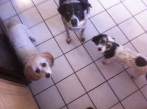 That's Jaz, Sam and Bee. They were helping me cook (i.e. hoping food would magically fall from the counter into their mouths). Sadly for them, it didn't.