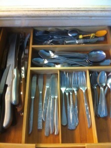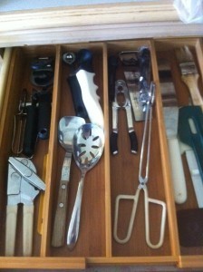 Over the weekend, Biker Dude and I hit Bed, Bath and Beyond and bought a few things to organize kitchen drawers and closets. Because woe was our organization.