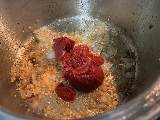 * Add tomato paste and cook for 1–2 minutes to deepen flavor.
