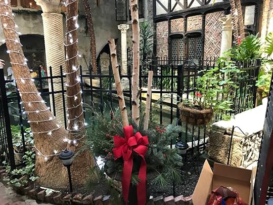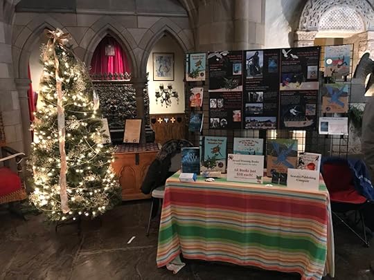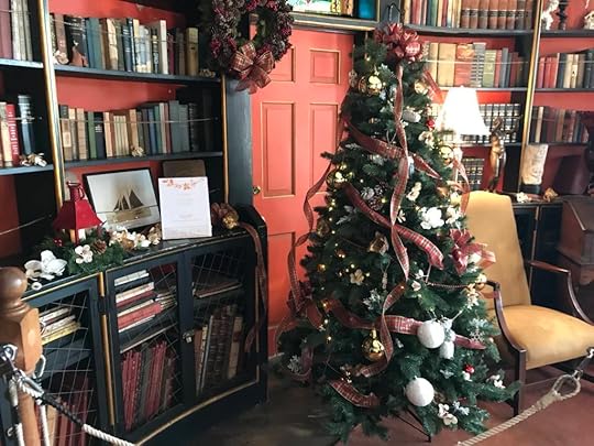 We learned so much about the fascinating Hammond Castle during our book signing on Saturday. Our table was nestled between a beautifully decorated Christmas tree, the skull of a Christopher Columbus crew mate, and a remote control weather controlled room, complete with lightning, containing an eight foot deep pool surrounded by a replica of a European marketplace. I’ve included some photos of this remarkable landmark, with each room decorated for the holidays. We were absolutely thrilled to have the opportunity to take part in these festivities!