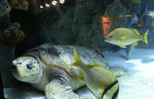 The aquarium has recently begun focusing on treating, rehabilitating, and releasing sea turtles as part of their conservation program. Three of the species they work with most are loggerhead turtles, green turtles, and Kemp’s ridley turtles, which are the most endangered sea turtles in the world. Sea turtles are threatened most by boat propeller strikes, ingestion of plastics in the ocean, and getting tangled up in fishing gear.