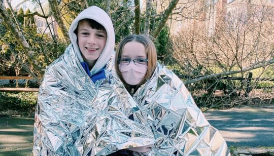 Outdoor/Covid-friendly gift exchange with my parents. Mom bought foil blankets (“only $2 each on Amazon!”) to keep us warm!