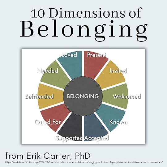 My friend and colleague Erik Carter created a wheel of belonging to help churches assess their willingness to fully incorporate people with disabilities within their congregations.