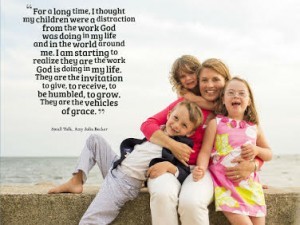 Here’s the full quotation, which needless to say I needed to be reminded of yesterday: “For a long time, I thought my children were a distraction from the work God was doing in my life and in the world around me. I am starting to realize they are the work God is doing in my life. They are the invitation to give, to receive, to be humbled, to grow. They are the vehicles of grace.”