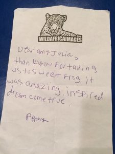 One of my favorite notes was from last summer. Penny had been asking if we could get frozen yogurt, and I finally took them all for dessert one evening. The next morning, on my pillow, I found her words: “Dear Amy Julia, thank you for taking us to sweet frog. it was amazing. inspired. dream come true. Penny”