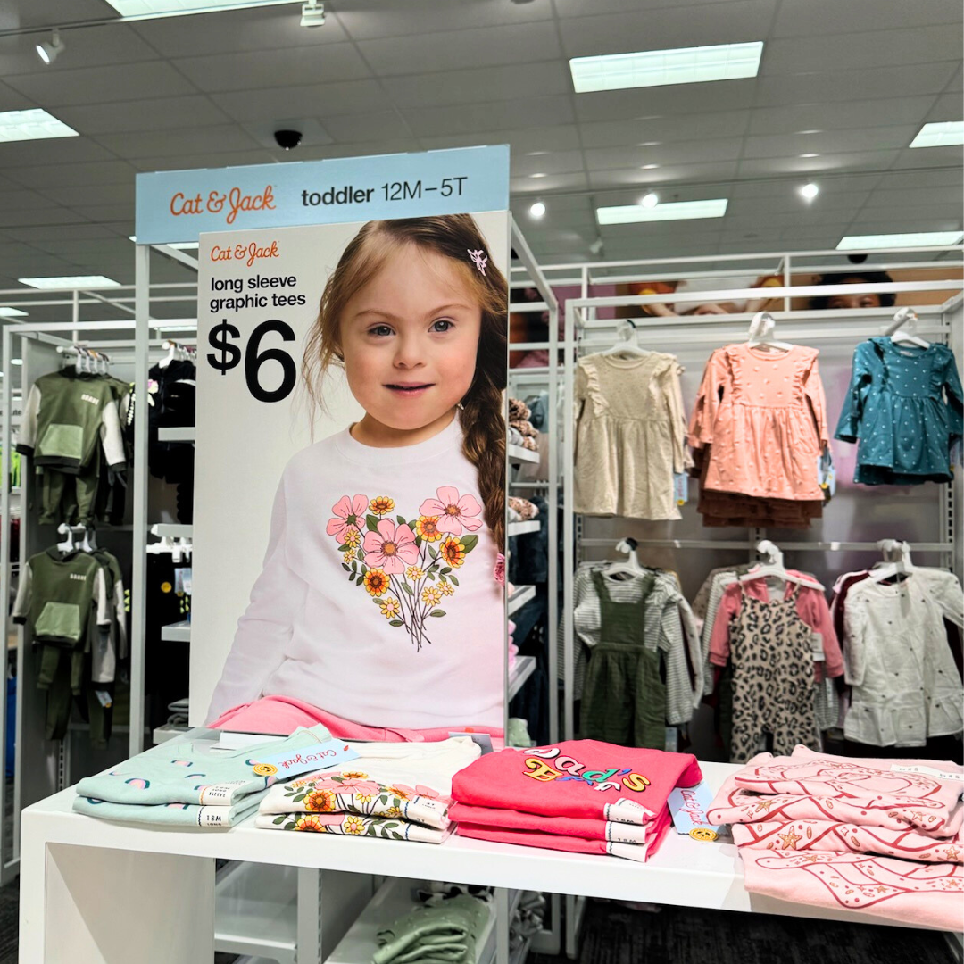 Over time, with the advent of social media and with greater acceptance of people with disabilities in our society, we have different images. We get images on Instagram of families who have family members with Down syndrome who are just enjoying their regular everyday lives. We go into a Target and see children with Down syndrome featured in large, Target-branded photos (see below for photos I took on our recent shopping trip), or we got into Sephora and see a large photo ad of a mom with her daughter who has Down syndrome.