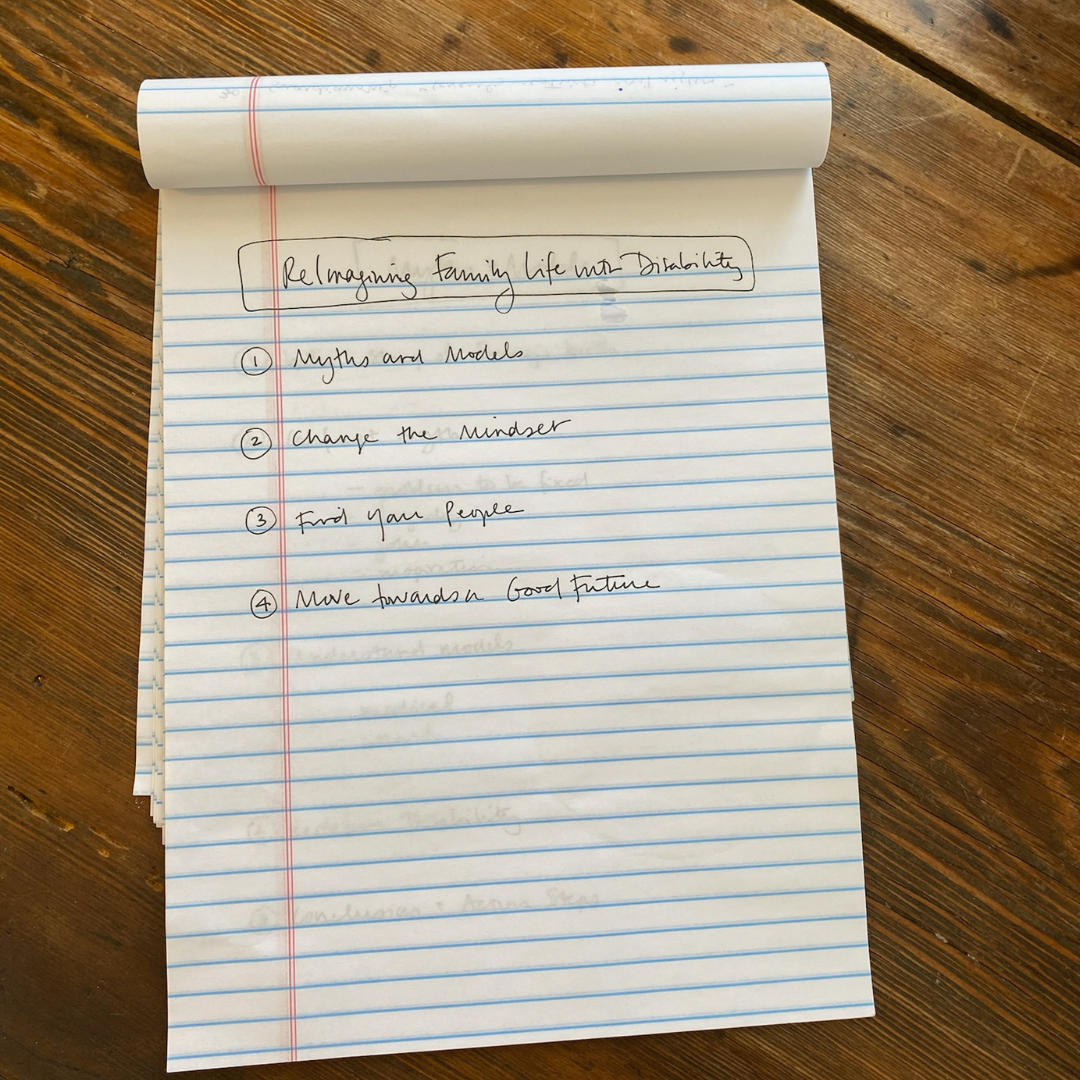 In March, I’m planning to film a four-part video teaching series called “Reimagining Family Life with Disability.” Right now, I’m sketching out the details of each video. I know what I want to cover—
