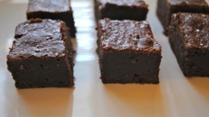Bake the brownies for 30 minutes or until a few moist crumbs stick to a toothpick stuck in the middle. Remove brownies from the oven and sprinkle with the salt and sugar. Cool brownies completely before serving - I like them stored in fridge and served cold, but they are great room temp as well. These freeze well, wrapped individually in plastic wrap.