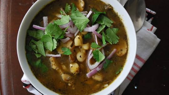 -I make a vegetable soup of some sort almost every night. It fills me up and there can’t be many calories in there that I worry about anyway. I love a Posole, which gives a boring soup a real kick or Rach’s Tex Mex Minestrone.
