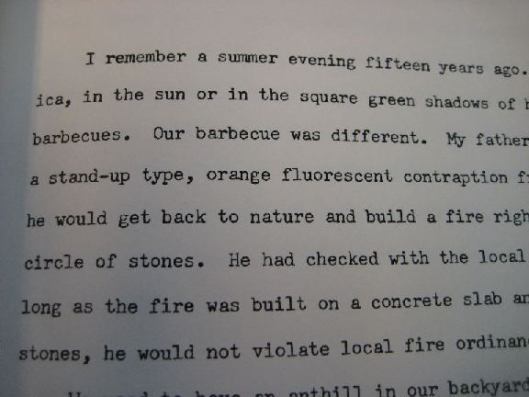While on campus for the reunion, I visited the alumni library and pulled my senior thesis down from the shelf. Since I got my B.A. in creative writing, my thesis consisted of two short stories and an essay. I confess I had completely forgotten the content. So I spent some time reading through the first short story.