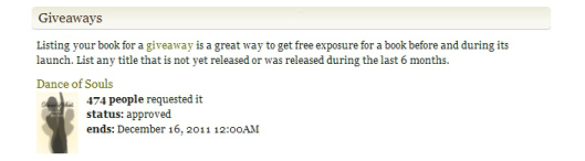 Second, the creators of the site seem interested in helping authors who may not have huge marketing budgets behind them promote themselves. Authors may set up an author page and are then able to access a variety of free and paid promotional tools. One of the cleverest (and free, except for the cost of books and mailing) is the book giveaway. Pre-launch, or within the first six months of the book's publication, you can offer a number of copies that you're willing to give away. Goodreads handles the whole process, making it easy for people to enter and easy for you as an author—all you do is send copies to the selected winners when the giveaway is over. Giveaway recipients are asked, but not required, to review the book.