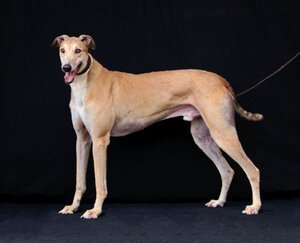 Greyhounds may not be in the AKC sporting dog group but make no mistake, greyhounds were bred for the hunt—primarily for hunting in the open where their pursuit speed and keen eyesight were essential. The original use of greyhounds was in running down smaller animals for meat. In the British Isles and on the Continent of Europe, they were prized for their ability to chase deer for meat and sport. Later, they became specialized in competition hare coursing. Some greyhounds are still used for coursing in artificial lure sports like dog racing. Before he retired, Diggory was a racer. He ran under the name Mega Diggory and some of his races can still be seen on the internet.
