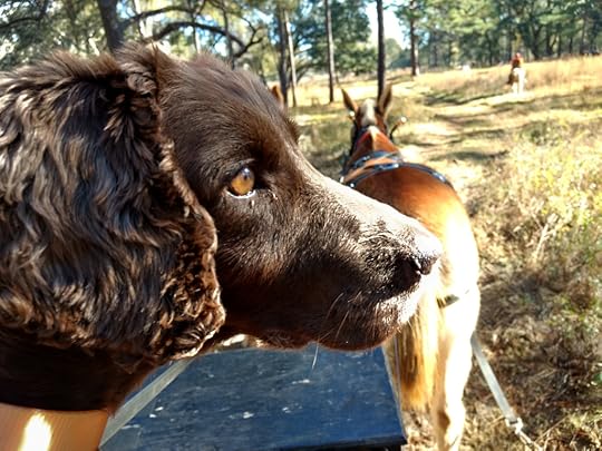 In quail hunting, “marking” a bird means making careful note of where it fell so it can be retrieved. As the wagon driver on a hunt, I try to mark any birds that fall in my vicinity. Landmarks are scarce in quail country, so I might use a tree, a shrub, or the edge of the road. On one cold January morning we were hunting near a water-filled low area called a “bottom”. When one of the birds fell in the middle of that bottom in a foot or two of water I marked where it splashed down, but assumed it was lost. Nobody was likely to wade out into the freezing water to retrieve that bird.