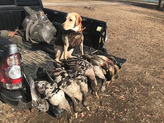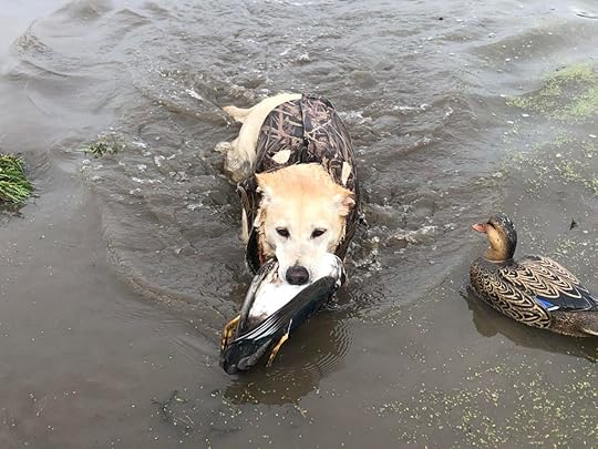 “Penny marked it the whole way,” Jared told me, “and when I sent her after it, she disappeared over a levee. A minute later back she came, toting a goose that looked as big as she was.”