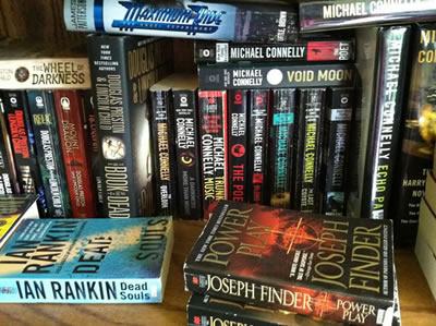 What you see in the above photo is just a tiny sample of my thriller novels.