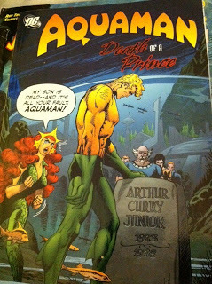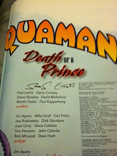 I was also the lucky recipient of a signed copy of AQUAMAN DEATH OF A PRINCE, which is a whopping big full-color book. He signed his stories, too: As the Undersea City Sleeps; The King is Dead, Long Live the King; The Menace of the Marine Marauder.