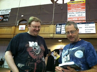 Scott David Aniolowski and his brother, Steve Aniolowski, were on site during the morning. Although Scott has a complementary copy of ELDRITCH EVOLUTIONS, Steve bought a copy for himself. (Hey, thanks, man!) This was Steve's first convention, so I hope he had some fun.