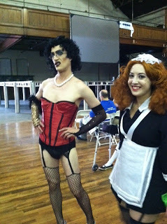 As I was leaving the con for the day, I saw this guy, who just screams ROCKY HORROR PICTURE SHOW. He's an RIT student and told me that RIT will present a (probably at midnight) theatrical rendition of ROCKY HORROR on Halloween this year. I WILL DEFINITELY BE THERE.