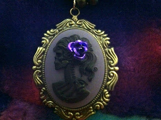 Finally, I must show you a necklace I nabbed from Sweet Poisons Cupcake Designs - a black skull on a purple and black background with a black chain -- oh, yes baby!