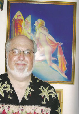 NOTE FROM LOIS: Oddly, Bob doesn't mention Margaret Brundage, definitely one of his favorite sffh artists (photo, left - Bob with a Margaret Brundage painting from his collection)