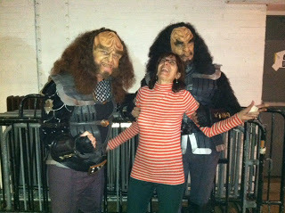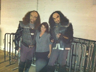 Here's the lovely Marilyn Ghigliotti, who starred in the cult classic film, Clerks. And here she is with the Klingons, too, but they're not attacking her!