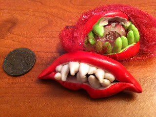 Which brings me to the rubber teeth, shown below, that Leslie What sent to me as a gift. These are refrigerator magnets. I've had them since the mid-90s. I'm not sure why this photo includes an old penny. Perhaps I found it as a convention - ? Yeah, probably.