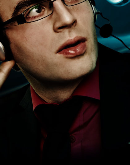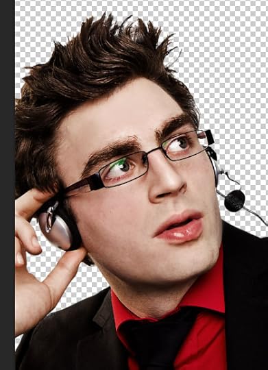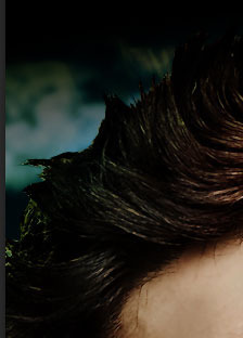 Unfortunately, even with my darkening, his edges are still not wonderful when he's composited with the background. It's not the fault of my selection either. The selection is pretty good. It's that the way the original shot is lit, his edges are just very bright. On the left you can see the edge of his hair looking too bright.