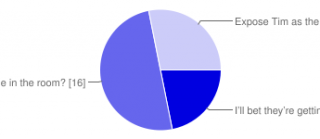 Exposing Tim as the Voice of reason was tied with opening up the memory stick for a while there, but today the memory stick has pulled into the lead.