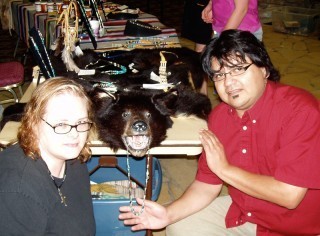Today was a Circus World kind of adventure. We stopped at a casino for lunch on the way and met a Native American guy making and selling beaded jewelry, so we got this necklace for Pete's sister. We figured she'd like it better if it had a cool story to go with it, so we had the artist take a picture of us with it in the bear's mouth. The bear was named Bob. He died in 1954. (you can click on the pix for bigger images; I'll put the rest under a cut.)