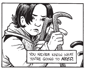 5. Via Twitter I learned that someone at some point scissored out a panel from a library copy of Bad Houses; this was the panel in question: