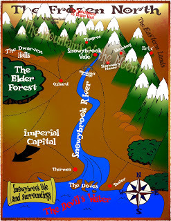 Here is the first of several maps (others coming eventually) that goes with my fantasy series, Snowybrook Inn. Click on map to enlarge, right click to save. Other maps soon to be available: a map of the town of Snowybrook Vale, and a floorplan of Snowybrook Inn.