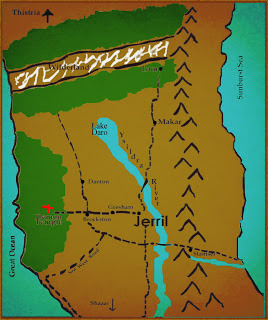 Here is a map for my fantasy novel Demonspawn. FYI, the dashed lines are roads, not country borders. Click to enlarge, right click to save.