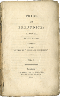 Jane Austen hat "Pride und Prejudice" nicht unter ihrem Namen veröffentlicht. Das schickte sich für eine Lady der damaligen Zeit nicht. Auf dem Einband der Originalausgabe stand deshalb nur die Verfasserangabe BY THE AUTHOR OF "SENSE AND SENSIBILITY." (von der Autorin von "Sinn und Sinnlichkeit"). Und auf dessem Titelblatt stand nur BY A LADY (von einer Lady).
