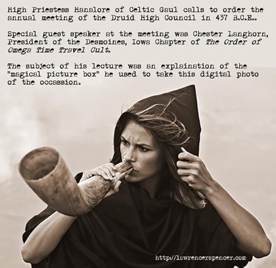 High Priestess Hanalore of Celtic Gaul calls to order the annual meeting of the Druid High Council in 437 B.C.E.. Special guest speaker at the meeting was Chester Langhorn, President of the Desmoines, Iowa Chapter of The Order of Omega Time Travel Cult. The subject of his lecture was an explaination of the “magical picture box” he used to take this digital photo of the occassion.